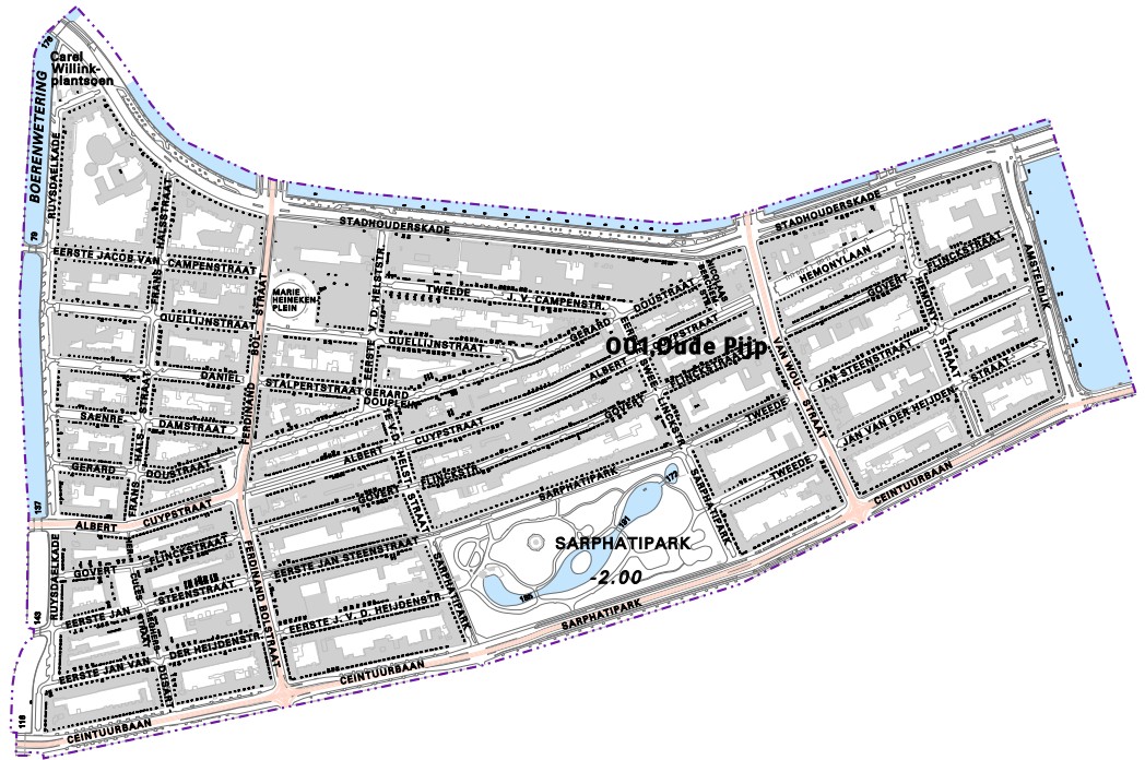 1. Oude Pijp (Ceintuurbaan, Boerenwetering, Stadhouderskade en Amstel vormen de grens, zie kaartje).