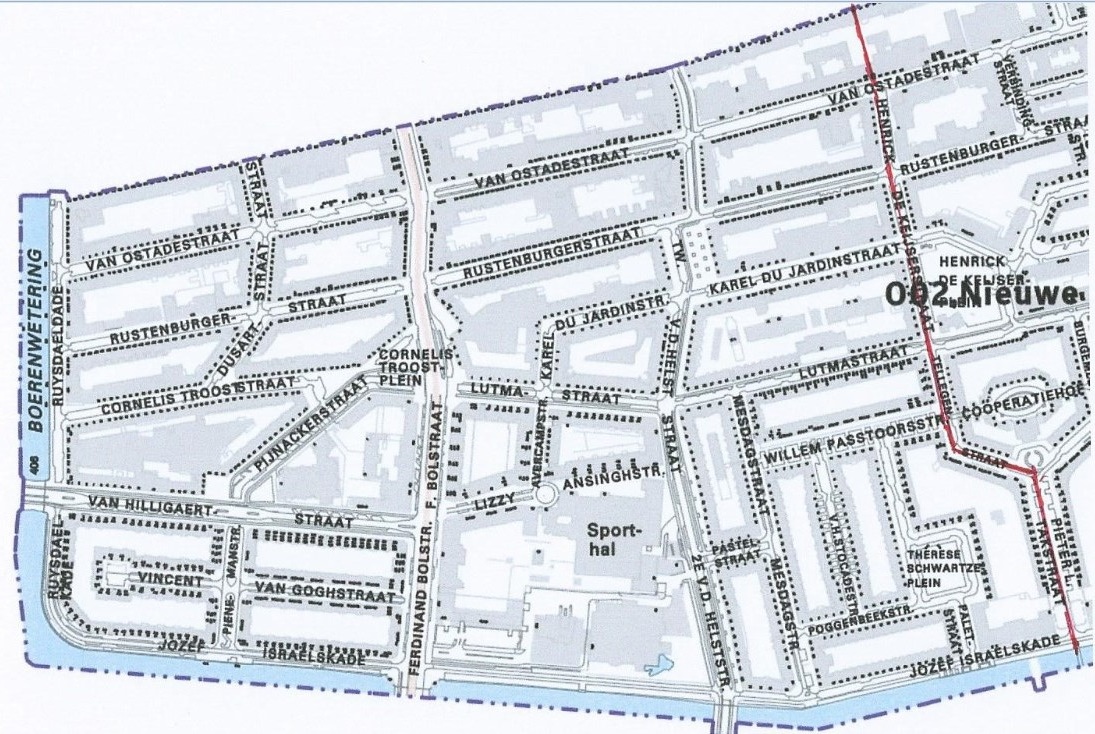 3. Nieuwe Pijp Links van ’t Midden (Ceintuurbaan, Hendrik de Keyserstraat/Burg. Tellegenstraat/P.L.Takstraat, Jozef Israelskade en Boerenwetering vormen de grens zie kaartje ).