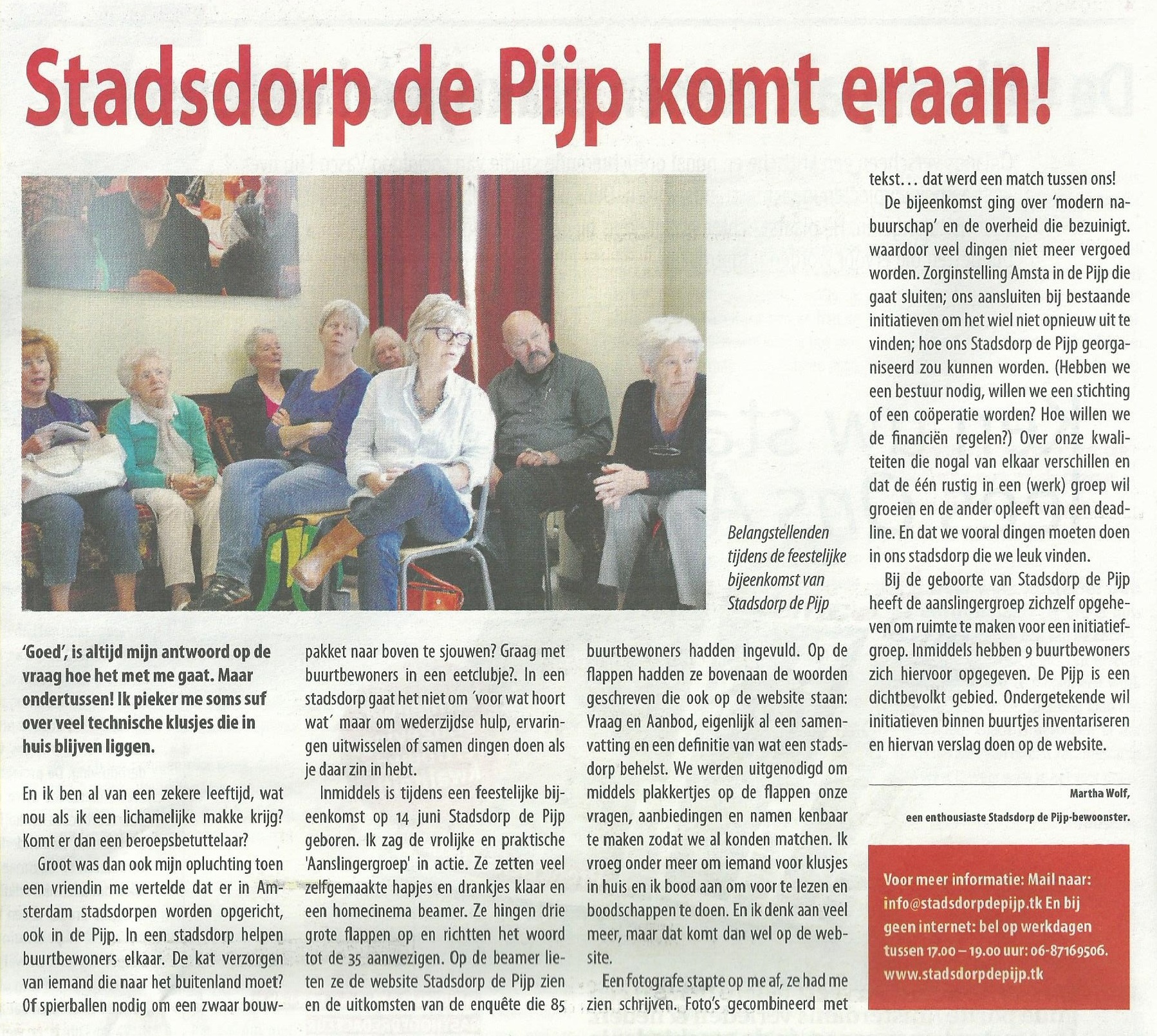 Het is leuk om te zien, dat ons Stadsdorp af en toe in de publiciteit komt. Zo kunnen anderen ook zien of horen, wat wij doen. Signaleer je dit of heb je suggesties hiervoor, dan horen wij dat graag. Mail even naar de Werkgroep Communicatie & PR.